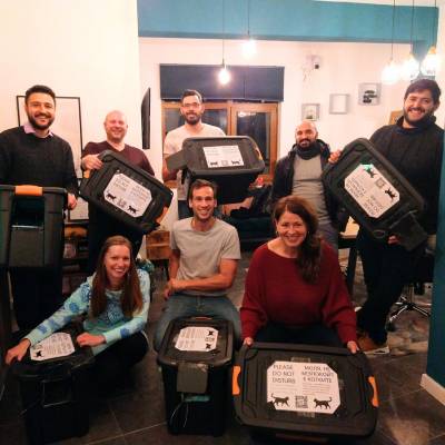 Along with an amazing group of volunteers who donated money and their time, we built 14 cat shelters to help protect cats from the freezing elements.